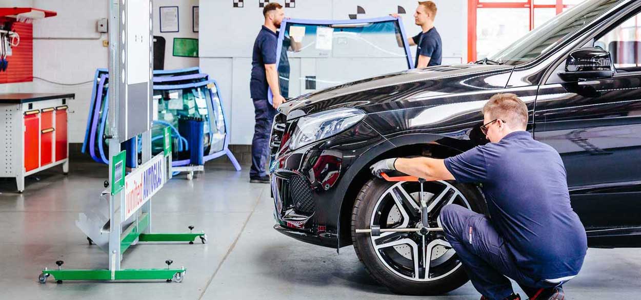 Nach dem Austausch der Frontscheibe lesen wir mit speziellen Diagnosegeräten die Daten an Ihrem Fahrzeug aus und justieren die Scheibenkameras mit dem Kalibrierungstool CSC (Camera & Sensor Calibration Tool) präzise auf Position und Werte nach den Vorgaben des Herstellers. Hierfür wird Lasertechnik und eine Kalibriertafel an der Achse des Fahrzeugs eingesetzt. So sichern wir nicht nur einen perfekten Austausch der Windschutzscheibe, sondern auch die einwandfreie Funktion der Scheibenkamera.